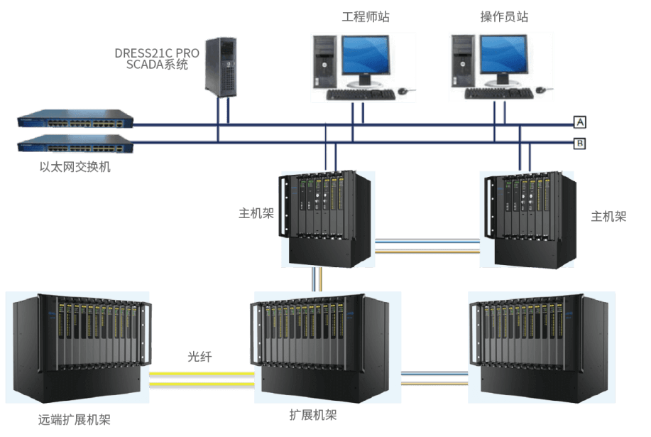 非安全模块,1oo1 单通道架构; CPU:330MHz,32bit,8MB ROM,32MB RAM; 2 个 10/100Mbps 以太网口,2 个 RS485 串口,速率可达 115.2Kbps; 支持冗余配置,用于连接 DRESS21C,LogViewer,第三 方设备等。