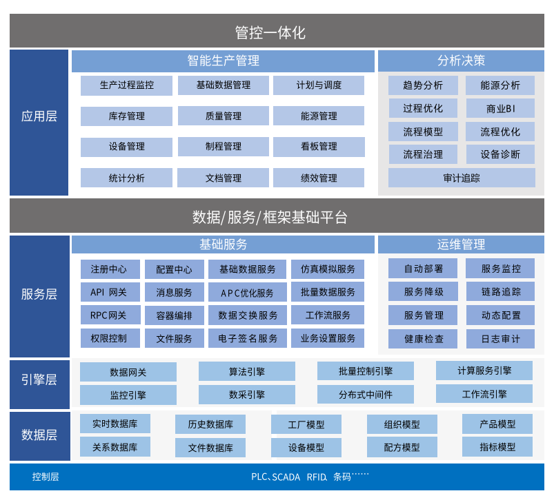 在离散制造行业,龙鼎源也可以提供自动化、智能化的解决方案,实现面向订单并结合生产工艺,从投入到产出的整个生产过程的管理。主要功能包含计划与调度、制程管理、库存管理、质量管理、能源管理、设备管理、文档管理、绩效管理、看板管理以及统计分析等。通过建设自动化、数字化及高透明化的工厂,逐步实现高附加值的智能工厂。构建最佳的信息化系统,实时提供生产信息、质量数据等,提高生产能力,降低生产成本,实现生产运营的准确性、高效性,提升公司竞争力。